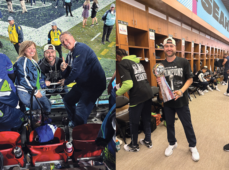Andrew Janocko poses for a photo with his parents Tim and Trina after the Super Bowl. Janocko is the quarterbacks coach for the Seattle Seahawks, who beat the New England Patriots, 29-13. — Photos are courtesy of Tim.