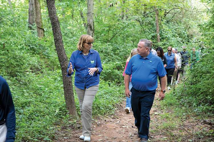 DCNR Secretary Cindy Adams Dunn talks with hike participants at Codorus State Park in York County last week. — Courtesy photo